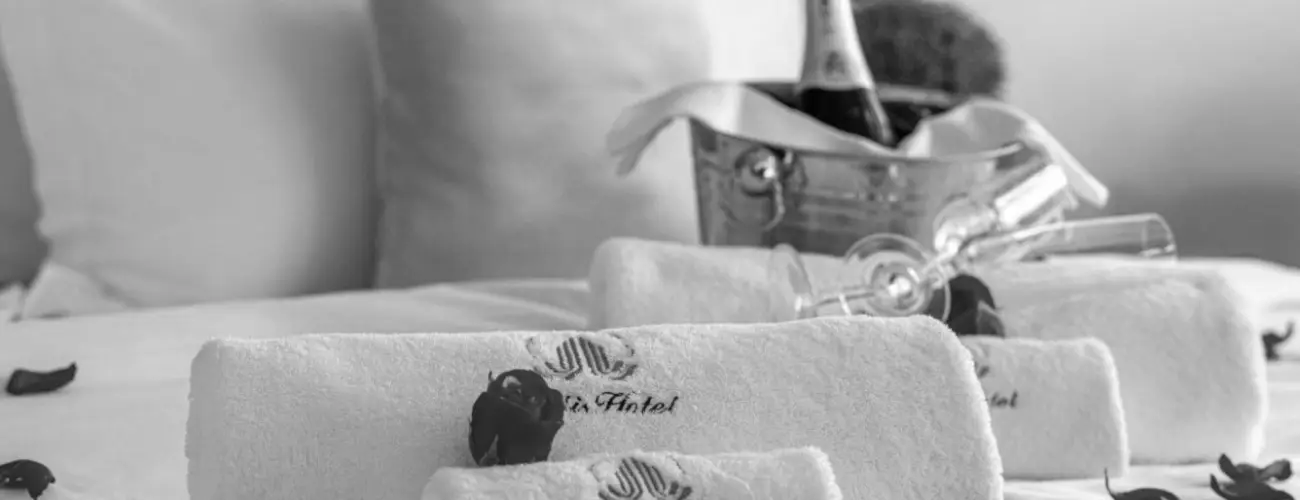 • Romantikus szobai bekészítés: 1 üveg pezsgő, 1 gyümölcstál, romantikus dekoráció